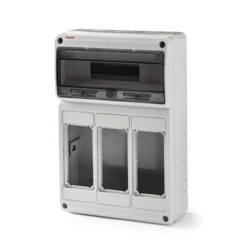 3968 | Envolvente pretroquelada 16 módulos para 3 tomas interblocantes verticales IP65