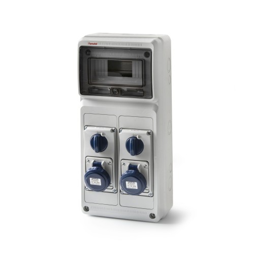 6201 | Envolvente cableada 8 módulos con 2 tomas interblocantes verticales 2P+T 16A IP65