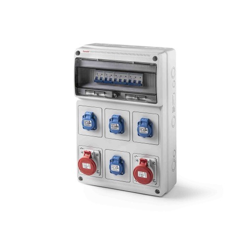 6529 | Caja cableada con protecciones 16m IP54 4x2P+TTL 16A, 2x3P+T 16A