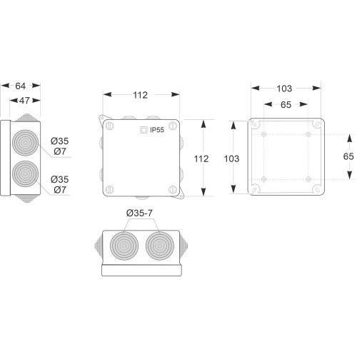 3011 | Caja estanca 7 conos IP55 112x112x64