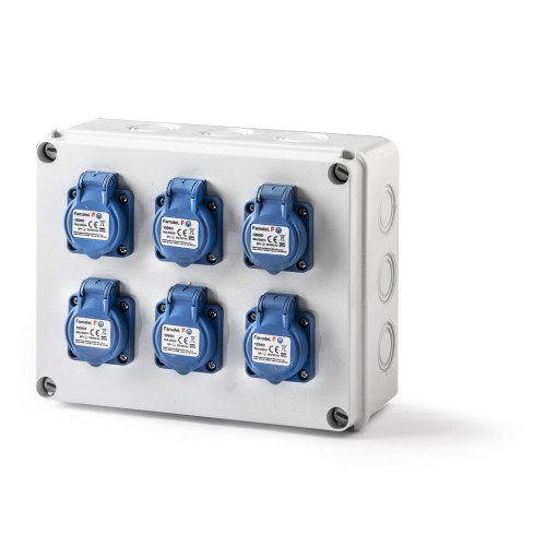 3066 | Caja estanca cableada con 6 tomas schuko IP54
