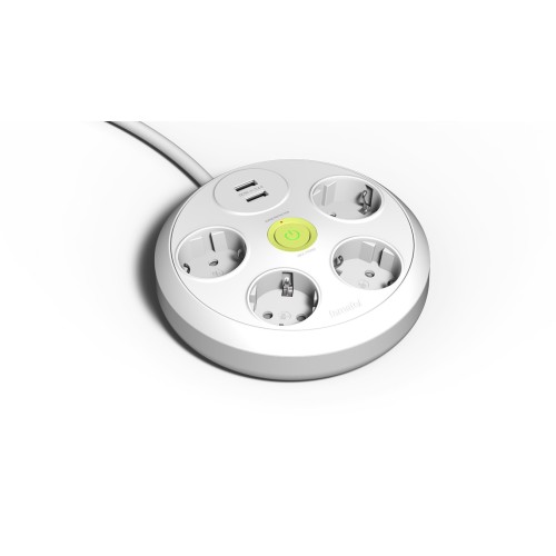 2644 | Base redonda 4 tomas 16A con toma de tierra, interruptor, 2 puertos USB y 1.5m de cable