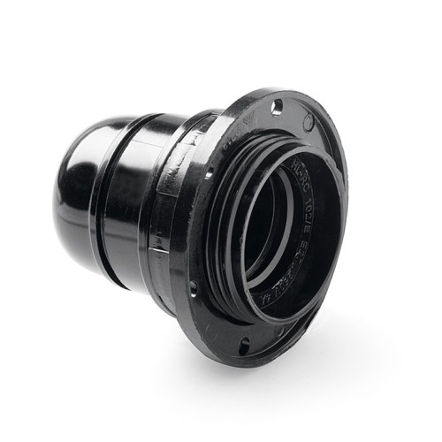 166 | Portalámparas de baquelita roscado con tope y arandela E-27