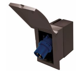 Clavija empotrable basculante para caravana 3P 16A color negro IP44. Ofrece conexiones seguras y duraderas.