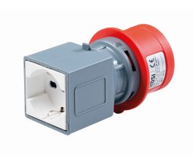 Adaptador clavija schuko 16A / toma industrial 2P+T 16A IP20 SpeedPRO. Ofrece conexiones seguras y duraderas.