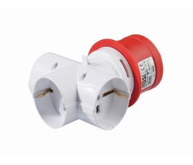 Adaptador clavija industrial 3P+N+T 16A / 3 tomas 2P+T 10/16A Bipasso IP20 SpeedPRO. Ofrece conexiones seguras y duraderas.