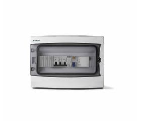 Cuadro AC monofásico 1P+N 10A con IGA, diferencial y sobretensiones. Caja de 8 módulos DIN para autoconsumo residencial.