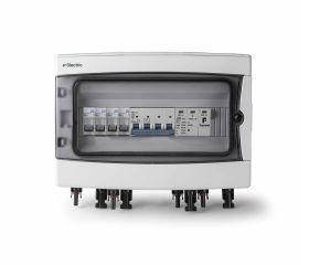 Cuadro DC-SE 4 string(s) / 1 MPPT, seccionador 63A, intensidad nominal 16A por string, con conectores MC4. Protección con fusibles, seccionador y sobretensiones. Envolvente de 26 módulos DIN.