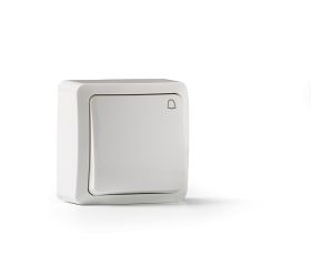 Pulsador timbre de superficie 10A 250V Serie Living 8000. Producto confiable y de alto rendimiento.