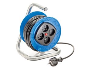 Enrollacable 4 tomas francesas con toma de tierra y 50m de cable H05VV-F 3G1,5mm2. Producto confiable y de alto rendimiento.