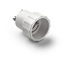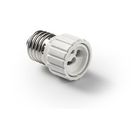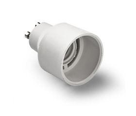 Adaptador portalámparas GU-10 a E-27. Proporciona iluminación versátil y confiable.