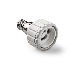 Adaptador portalámparas GU-10 a E-14. Proporciona iluminación versátil y confiable.