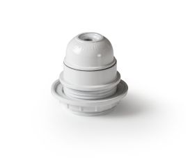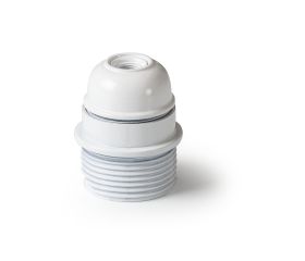 Portalámparas de baquelita roscado con tope y arandela E-27 Blanco. Proporciona iluminación versátil y confiable.