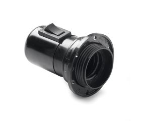 Portalámparas de baquelita roscado con tope, arandela e interruptor E-27. Proporciona iluminación versátil y confiable.