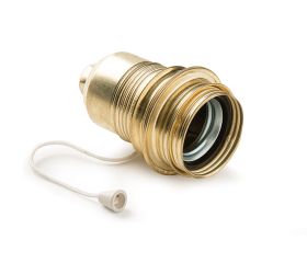 Portalámparas metálico roscado con arandelas e interruptor de cadena E-27. Proporciona iluminación versátil y confiable.